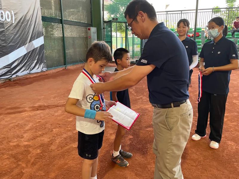 北京时间9月25日下午,2021年“湾区·金融城”青少年网球公开赛(C400)红土站U8组的角逐,在国际网球中心落下帷幕。最终,在经过91场比赛的角逐后,宋佳辰在决赛中以11-9、11-7战胜了黄沐川,成功赢得本站比赛的冠军。 冠军宋佳辰(右) 裁判长王林为冠亚军球员颁奖 值得一提的是,决赛双方在第一阶段比赛中均来自同一个小组,在首场对决中,黄沐川以11-8战胜了宋佳辰。时隔数小时后,两人在第二阶段比赛中一路高歌猛进,并再次隔网相对。这一次,宋佳辰笑到了最后。这个缩影也从侧面反映了本站球员之间的实力十分接近。