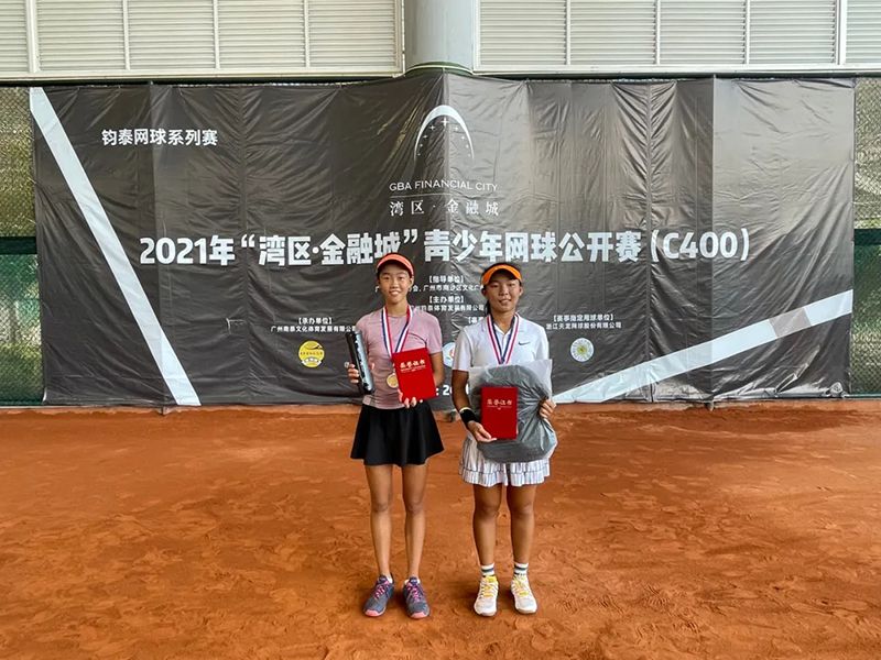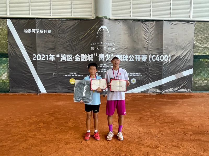 北京时间10月2日晚,2021年“湾区·金融城”青少年网球公开赛(C400)红土站U14组在国际网球中心落下帷幕。最终,吴天皓、张沁岩分别赢得男单和女单的冠军,陈宁帆/高若宸和谢睿琪/张沁岩泽分别赢得了男双和女双的冠军。值得一提的是,张沁岩一人赢得了双冠,成为了本站赛事的最大赢家。女单冠军张沁岩(右)男单冠军:吴天皓(左)男双冠军:陈宁帆/高若宸女双冠军:谢睿琪/张沁岩